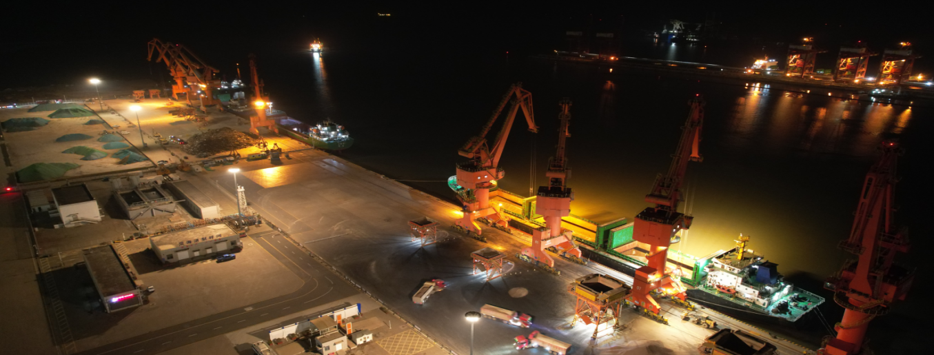 碼頭現(xiàn)場多船在港,晝夜奔忙