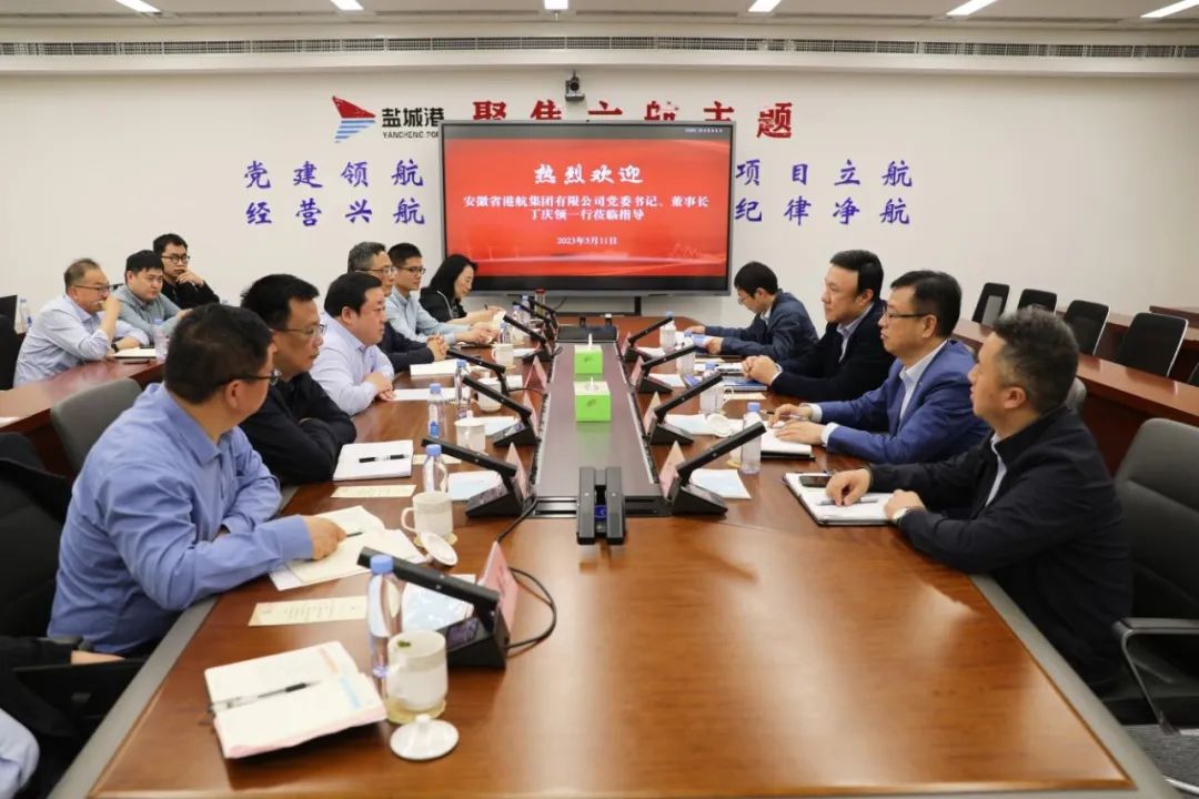 周正雄對(duì)丁慶領(lǐng)一行的到訪表示歡迎,對(duì)安徽省港航集團(tuán)在鹽城港發(fā)展過(guò)程中給予的關(guān)心和支持表示感謝,并介紹了鹽城港相關(guān)情況。他說(shuō),2020年,市委、市政府整合全市沿海和內(nèi)河港口資源,形成河海聯(lián)運(yùn)一體化格局,實(shí)現(xiàn)以港口資源的高效整合利用帶動(dòng)港城、港產(chǎn)聯(lián)動(dòng)發(fā)展。集團(tuán)成立以來(lái),著力強(qiáng)化內(nèi)外資源整合優(yōu)化,全力以赴抓好生產(chǎn)經(jīng)營(yíng),于2021年首次躋身全國(guó)億噸大港行列,并在全國(guó)沿海港口競(jìng)爭(zhēng)中持續(xù)實(shí)現(xiàn)爭(zhēng)先進(jìn)位,同時(shí)在前兩年發(fā)展的基礎(chǔ)上深入開(kāi)展全面深化改革創(chuàng)新各項(xiàng)工作,為如期完成集團(tuán)首個(gè)五年規(guī)劃各項(xiàng)目標(biāo)任務(wù)打好基礎(chǔ)。當(dāng)前,集團(tuán)搶抓淮河入海水道改航道契機(jī),將淮河流域作為未來(lái)發(fā)展的重點(diǎn)領(lǐng)域和方向,持續(xù)深耕淮河流域市場(chǎng),加快融入國(guó)內(nèi)國(guó)際雙循環(huán)新格局,努力為港口在未來(lái)發(fā)展中贏得先機(jī)、贏得主動(dòng)。懇請(qǐng)安徽省港航集團(tuán)一如既往地關(guān)注和支持鹽城港的發(fā)展,鹽城港有信心與安徽省港航集團(tuán)在碼頭共建、汽車(chē)滾裝運(yùn)輸業(yè)務(wù)開(kāi)拓等領(lǐng)域加強(qiáng)合作,實(shí)現(xiàn)雙方合作共贏。