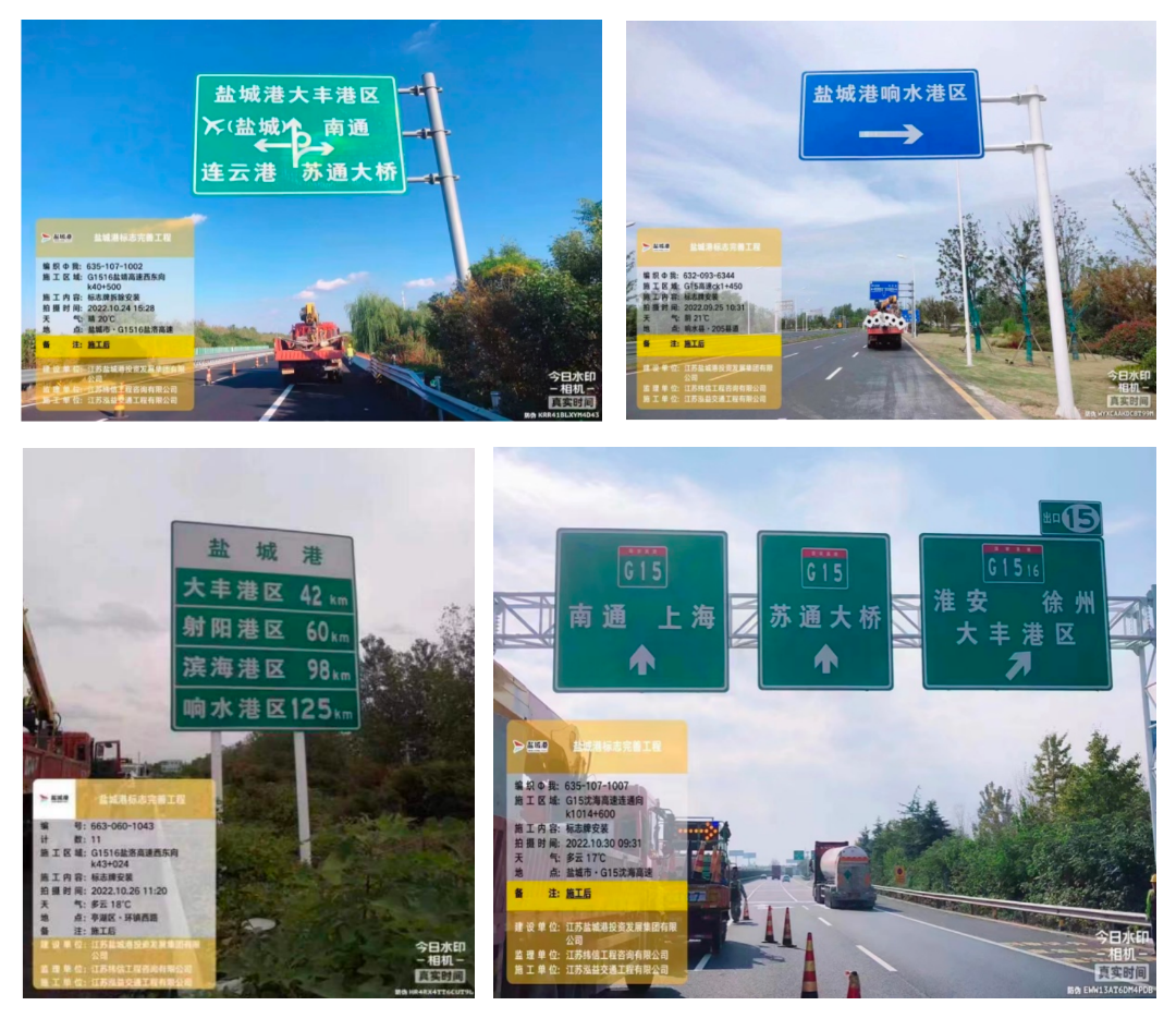 江蘇省高速公路網中鹽城港指引標志完善工程項目,是實業發展集團根據市委、市政府及鹽城港集團黨委的戰略部署投資規劃的重點項目,此項目旨在規范統一鹽城港集團下屬各港區在鹽城境內公路信息標志,在鹽城境內G15沈海高速、G1515鹽靖高速、G1516鹽洛高速及相關互通道中設置并完善鹽城港指引標志。該項目建成后,可以準確指引來往集團下屬各港區客商車輛行駛方向,進一步提高鹽城港各港區的知名度。