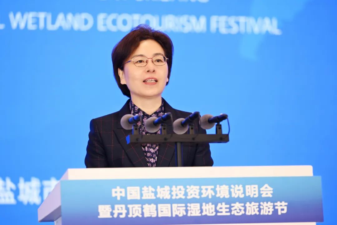 她說,鹽城是一座具有光榮傳統和美好前景的城市,浩瀚的黃海給了我們最美生態,也賦予鹽城澎湃的發展動力,讓這里擁有“海納百川”的廣闊空間、“和諧共生”的綠色生態、“蓬勃興起”的特色產業、“情比金堅”的優質服務。近年來,全市上下沿著習近平總書記擘畫的“強富美高”宏偉藍圖,不斷書寫勇當沿海地區高質量發展排頭兵的嶄新畫卷,迎來歷史性的發展機遇,迸發著蓬勃向上的活力,蘊含著前所未有的商機,鹽城發展大有作為、大有可為。百聞不如一見,一見不如小住,小住不如常駐。期待更多企業家發現鹽城、走進鹽城、深耕鹽城,心連心、肩并肩,干大事、成大業,攜手共創美好未來。