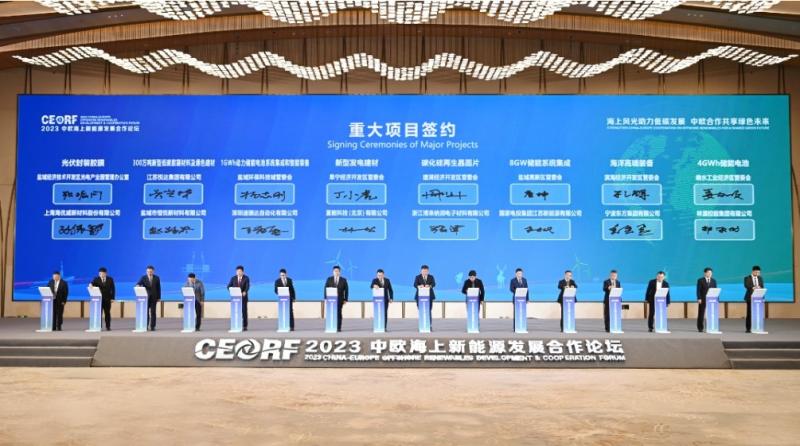 論壇發(fā)布了《2023中歐海上新能源發(fā)展合作論壇鹽城宣言》《公開征集海上光伏、海上能源島與新能源高比例應(yīng)用試點(diǎn)示范技術(shù)方案》《中歐漂浮式海上風(fēng)電關(guān)鍵技術(shù)與產(chǎn)業(yè)鏈對(duì)比分析與合作潛力研究報(bào)告》等,簽約了25個(gè)重大項(xiàng)目,總金額294.8億元,為進(jìn)一步推動(dòng)海上新能源技術(shù)創(chuàng)新與產(chǎn)業(yè)升級(jí)、深化中歐務(wù)實(shí)合作注入新動(dòng)能。