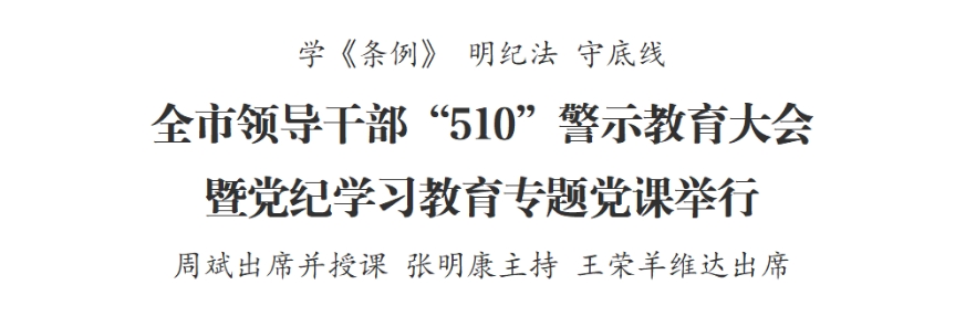 全市領(lǐng)導(dǎo)干部“510”警示教育大會(huì)暨黨紀(jì)學(xué)習(xí)教育專題黨課舉行