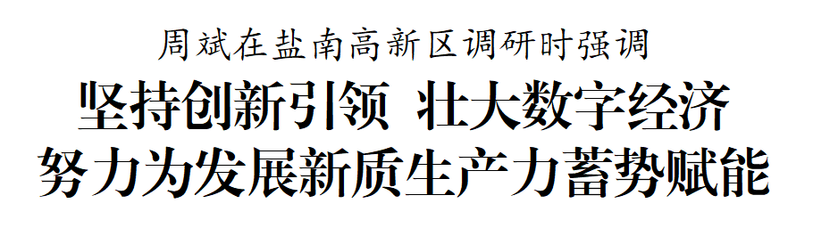 6月19日下午,市委書記周斌到鹽南高新區(qū)調(diào)研數(shù)字經(jīng)濟(jì)和機(jī)器人產(chǎn)業(yè)發(fā)展工作。他強(qiáng)調(diào),要認(rèn)真學(xué)習(xí)貫徹習(xí)近平總書記關(guān)于發(fā)展數(shù)字經(jīng)濟(jì)的重要論述,把握數(shù)字時(shí)代新趨勢,按照中央精神和省市有關(guān)部署要求,加快推動(dòng)數(shù)字產(chǎn)業(yè)化、產(chǎn)業(yè)數(shù)字化,培育壯大數(shù)字經(jīng)濟(jì),促進(jìn)“數(shù)實(shí)融合”發(fā)展,更大力度建設(shè)“數(shù)字鹽城”,為發(fā)展新質(zhì)生產(chǎn)力增添新動(dòng)能。
