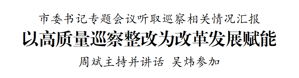 7月10日,市委書記周斌主持召開市委書記專題會議,深入學習領會習近平總書記關于黨的自我革命的重要思想和巡視工作的重要論述,聽取八屆市委第七輪巡察、第三輪巡察整改督查評估和近幾輪巡察整改日常監(jiān)督情況匯報,研究下一階段巡察工作。市委副書記吳煒參加。