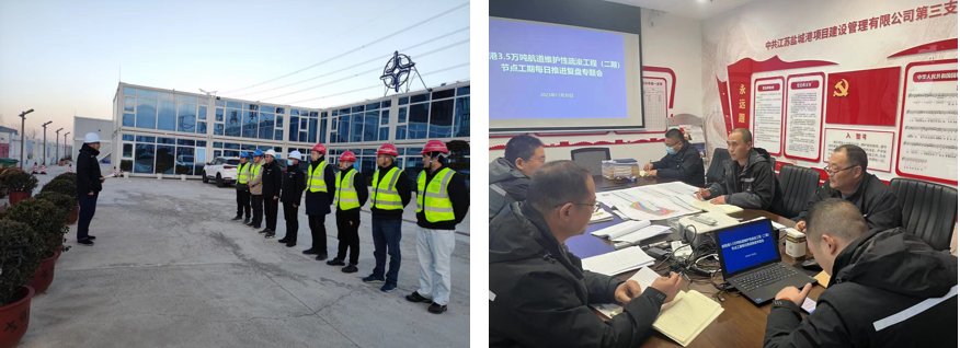 作為集團成立以來的第一個臨時黨支部,中共江蘇鹽城港射陽港3.5萬噸航道工程臨時支部委員會深入學習貫徹黨的二十大精神,傳承弘揚不怕困難、不畏艱險,勇于斗爭、敢于勝利的鐵軍精神,發(fā)揮基層黨組織和共產黨員戰(zhàn)斗堡壘和先鋒模范作用,全面推行“黨建+項目管理”“黨建+安全生產”工作,積極開展工程建設管理政策、施工工藝措施等方面研究,充分吸收合理化建議,協(xié)同配合、加強調度,及時會商解決遇到的困難和問題,形成推進項目驗收的強大工作合力。