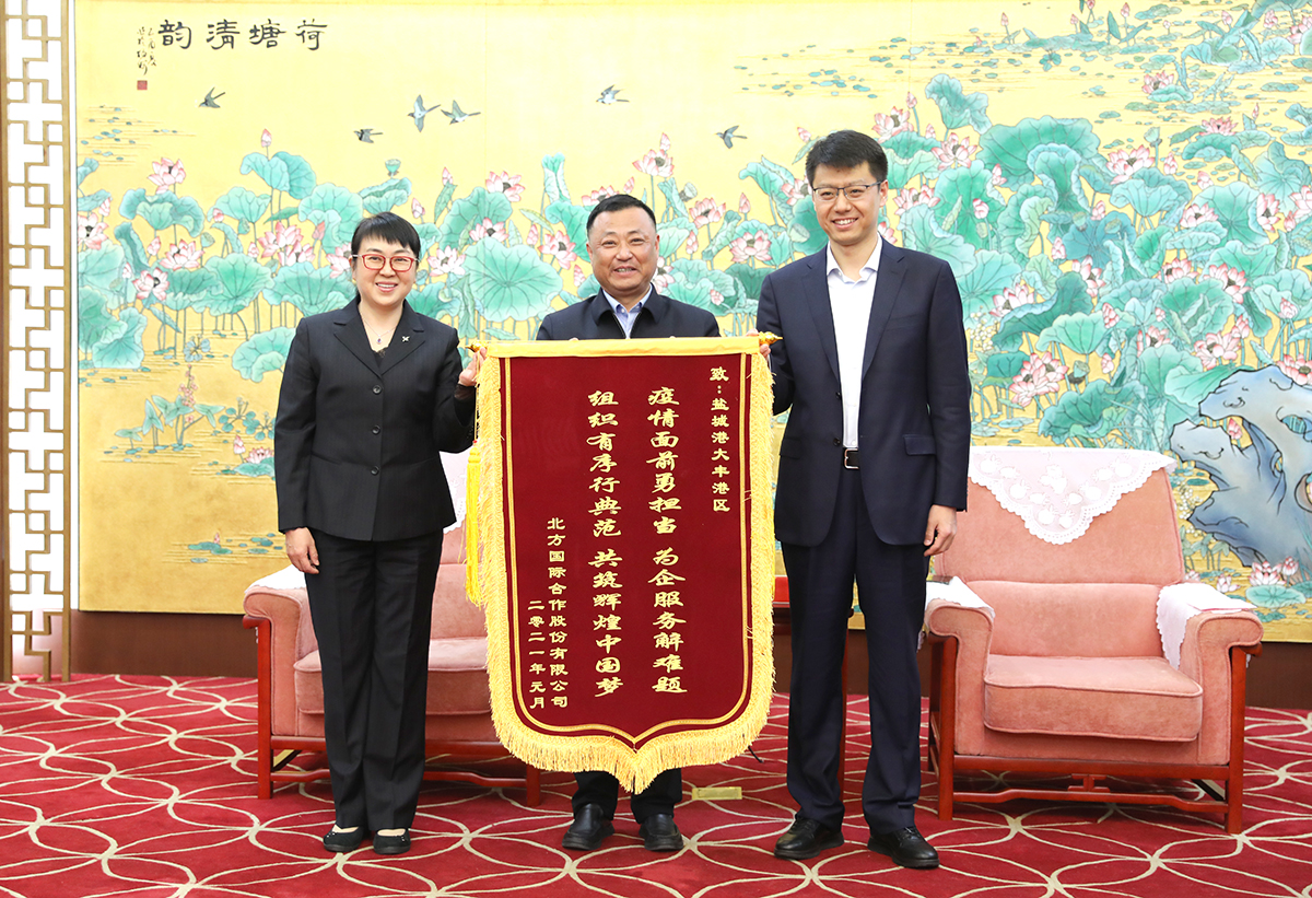 3月2日上午,北方國際合作股份公司總經理助理劉博一行專程趕赴鹽城,向集團贈送錦旗,并就相關項目對接展開洽談。副市長蔣巍會見“北方國際”客人。集團黨委委員、紀委書記周旭東參加會見并現場接受錦旗。